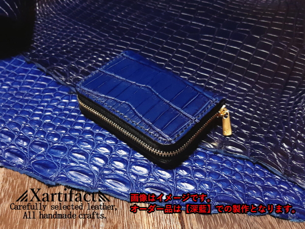 【 外装素材 】:本藍染めスモールクロコダイル(ワニ革、ポロサス)/【深藍】