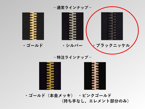 【 使用ファスナー 】:YKK社製エクセラファスナー【金具:ブラックニッケル】
