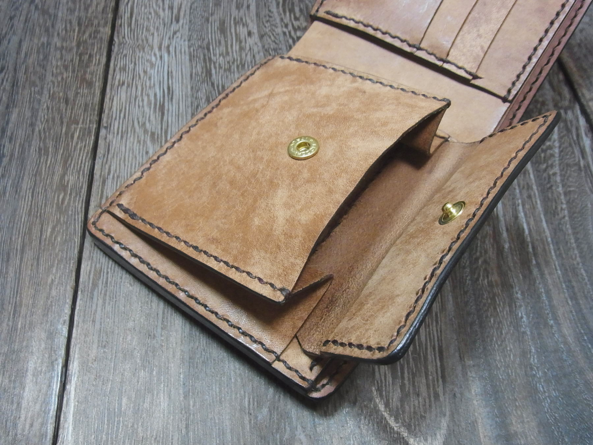 内装にはIL PONTE(イルポンテ)社製のプエブロを使用した総手縫いの2つ折りショート財布。