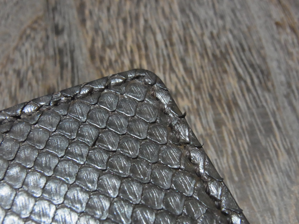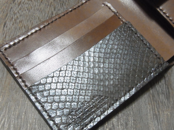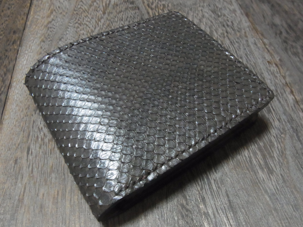 外装全面にエキゾチックレザーのパイソンを使用した2つ折りショート財布。