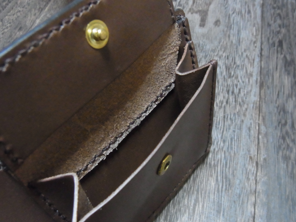 内装にはヌメ革をグレージング仕上げした栃木レザー社製のサドルレザーを採用して製作致しました。