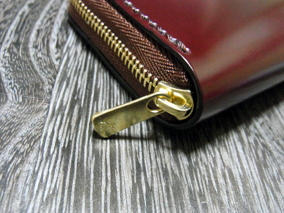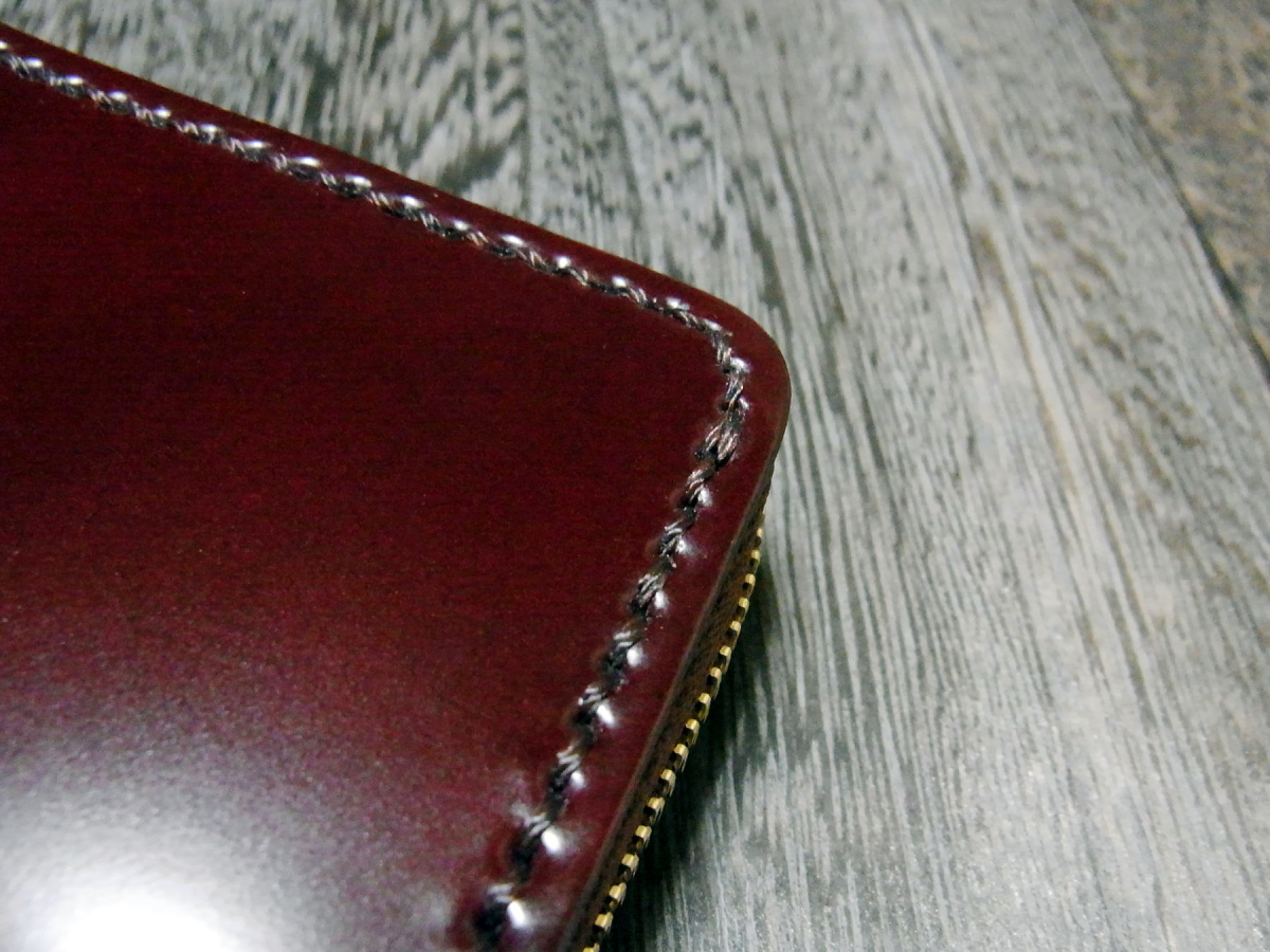 外装にはムラが少なく綺麗な色合いと透明感のある光沢が魅力の新喜皮革社製のコードバンを使用し、