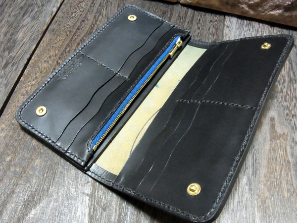 ホーウィン社製クロムエクセルレザー(ネイビー)2つ折り長財布
