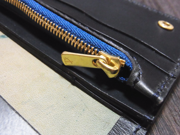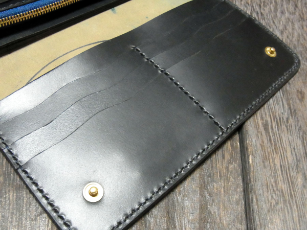外装と内装共にホーウィン社製の革を使用した2つ折り長財布です。