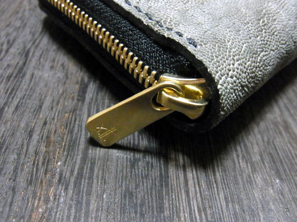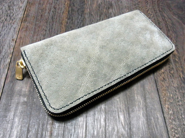 エキゾチックレザー(エレファント、グレー)×栃木レザー社製ヌメ革(ブラウン)ラウンドファスナー長財布