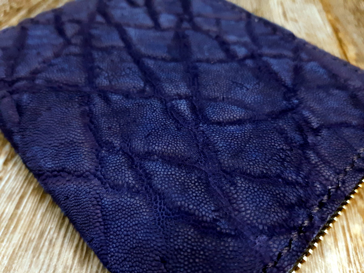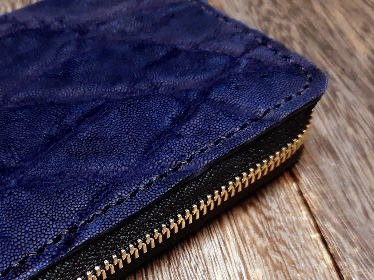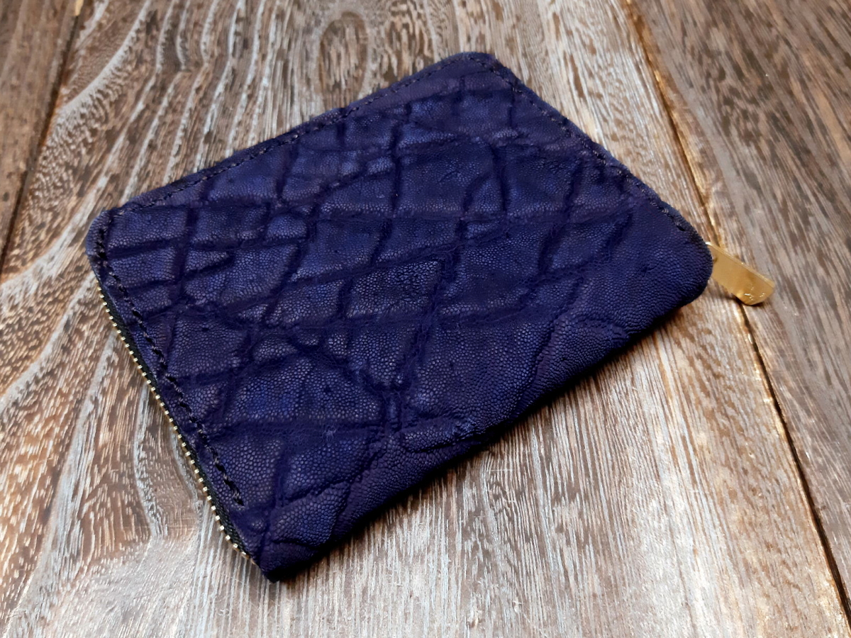 【本藍染め】エレファントレザー(象革、本藍染め)コンパクトラウンドファスナー財布【総手縫い】